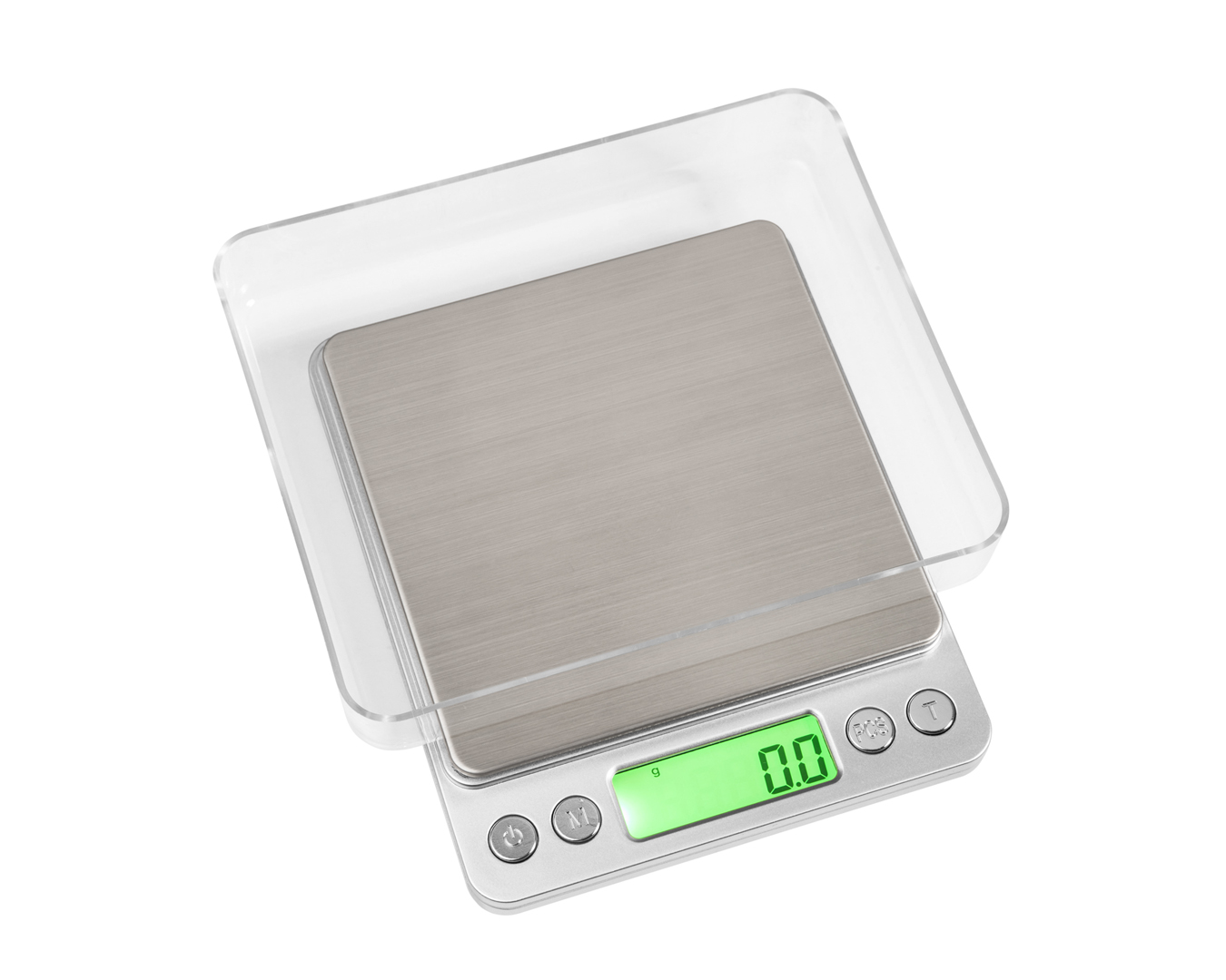 Large stainless steel platform, four easy to use function buttons and a green backlit display for a clearer view. Supplied with two large weighing trays, acting as both a lid and a protective layer for the Scale.