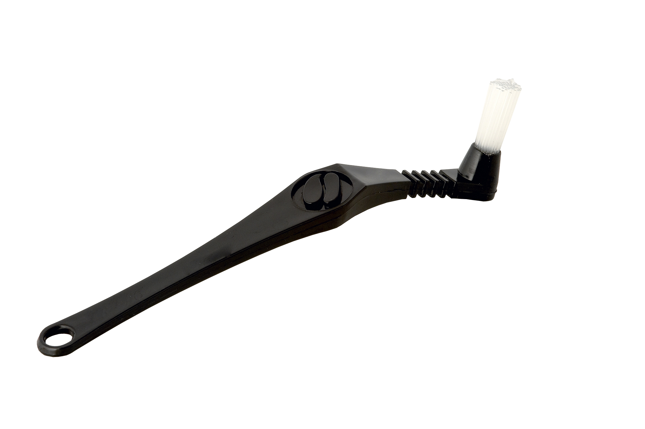 An angled group head brush for cleaning the group head of domestic or commercial espresso machine. Features specially designed fins on the handles to direct hot water away from hands. An essential accessory for all baristas. Keeps group heads clean and prevents leaks between the edge of the portafilter and gasket.